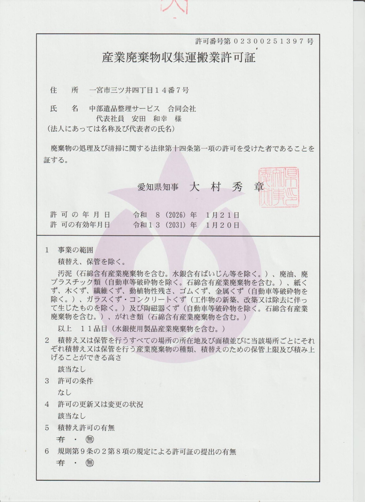 遺品整理士は、遺品の取り扱い手順や遺品整理に関わる法規則など遺品整理に関する知識を身につけた専門家です。ご遺族様の気持ちに寄り添いながら、法令に則った適切な対応が可能です。